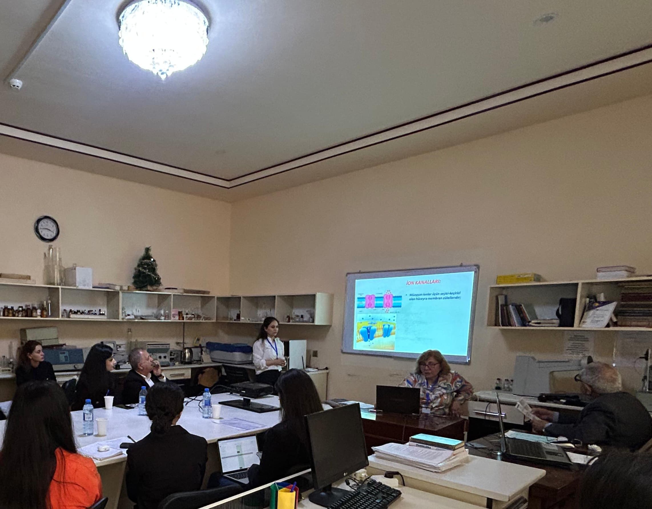 Researchers from the Institute of Biophysics also actively participated in the event. Junior research fellow Fidan Gudratova from the “Molecular and Cellular Biochemistry” Laboratory presented a report on “Investigation of New Functional Structures in BK Ion Channels,” and junior research fellow Aysel Aliyeva from the “Cell Signaling” Laboratory delivered a presentation on “Mechanisms of Heme-Mediated Regulation of Ion Channels.” Their presentations were met with great interest by the conference participants.